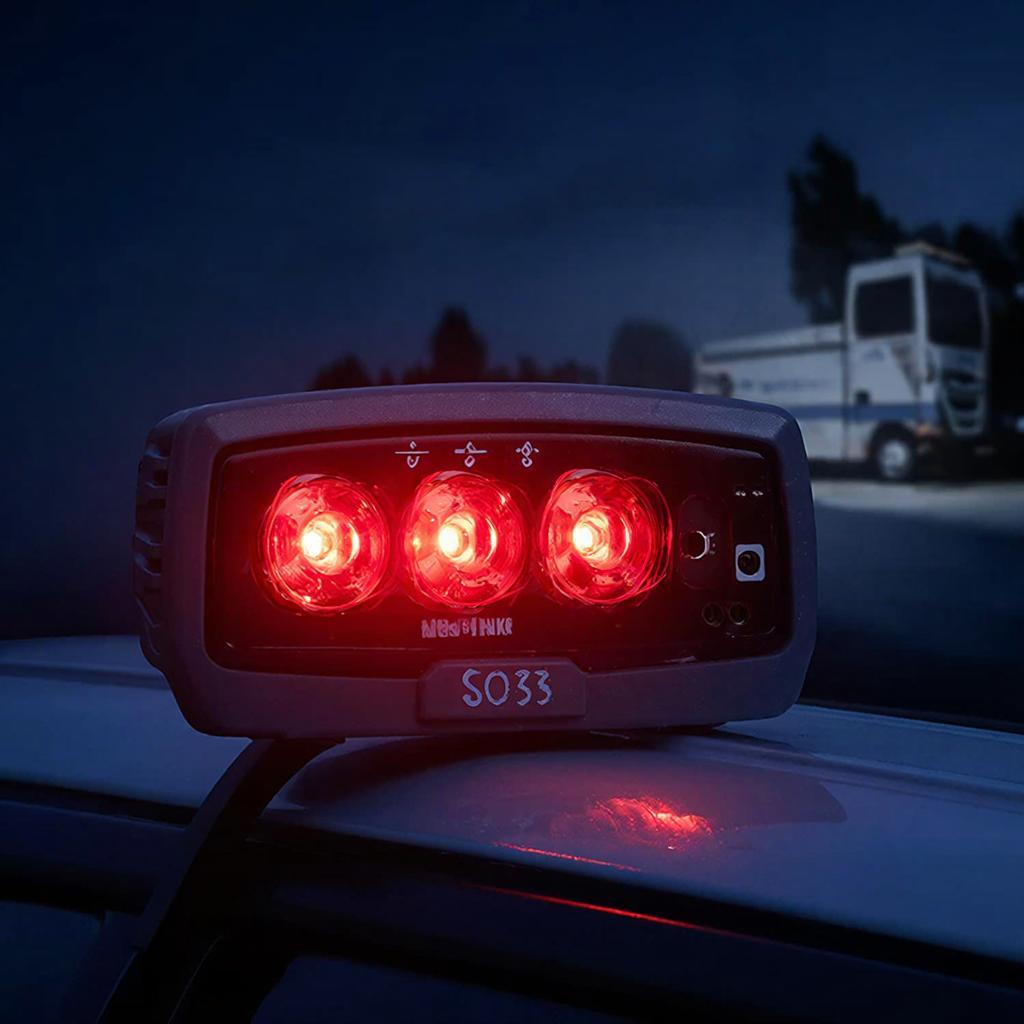 Устройство оснащено восемнадцатью вариантами мигающего света (режимы Flash Pattern), реализовано в виде мощного стробоскопа модели S033 RED. Осветительный элемент представлен тремя сверх яркими светодиодами типа COB общей мощностью полтора ватта (каждый светодиод потребляет пол ватта энергии). Применяется преимущественно в качестве дополнительного светового сигнала, обеспечивающего лучшую видимость специальной техники при плохих условиях освещения. Доступен в двух цветовых решениях.